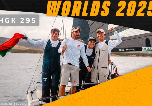 Marco Pocci sailing with Giacomo Ferrari, Bertuzzi Giorgia and Giovanni Meloni won the 2025 RS21 World Championship in Sardinia.