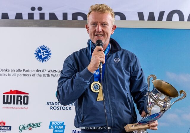 Britain’s Charlie Cumbley has won the 2025 OK Dinghy European Championship, in Warnemünde, Germany,