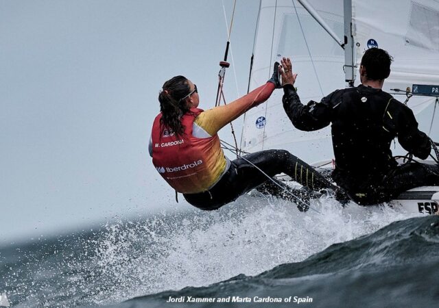 Jordi Xammer and Marta Cardona of Spain turned up the power, with a 2 and 1 to take the lead after day 2 of the 470 World Championship