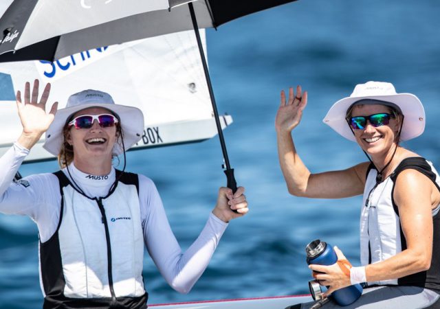 Hannah Mills and Eilidh McIntyre held onto the overall lead by just one point after Thursday’s racing at the 470 Worlds