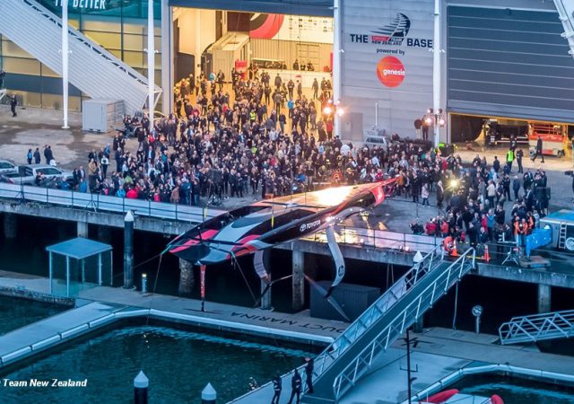 Defiant, the first AC75 built for New York YC America’s Cup team arrived in Auckland, New Zealand, on Monday.