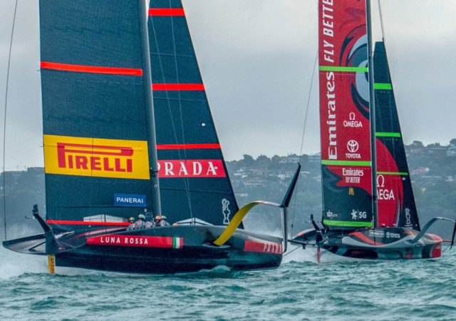 The second day of official practice racing but only ETNZ and Luna Rossa made it onto the water. Ben Ainslie’s Ineos Team UK and the American Magic decide to give it a miss