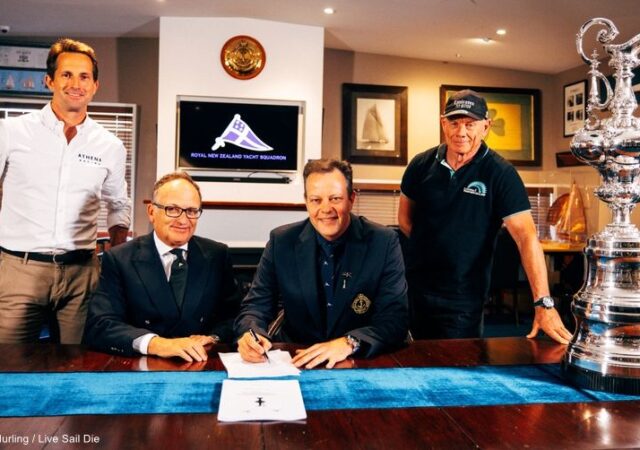 America’s Cup defender, Grant Dalton’s Team New Zealand, and Challenger of Record, Ben Ainslie’s Athena Racing, sign Protocol for the Louis Vuitton 38th America’s Cup