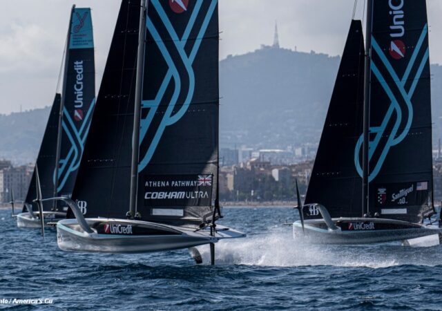 The British AC40 Athena Pathway team secured the final UniCredit Youth America’s Cup Semi-Final spot in a final race showdown in Barcelona