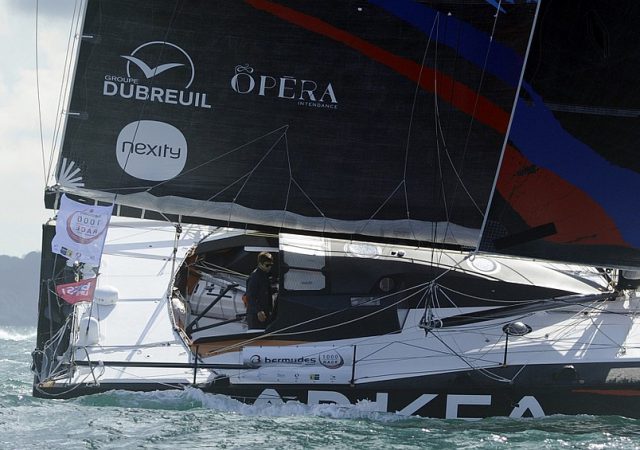 Bermuda 1000 Race Douarnenez – Sebastien Simon the skipper of ARKEA PAPREC is expected round the Fastnet lighthouse, early Saturday morning.