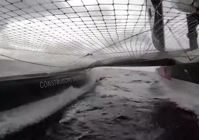 Thirty hours into racing and all four of the trimarans competing on the Brest Atlantiques race have already reached the latitudes of Gibraltar