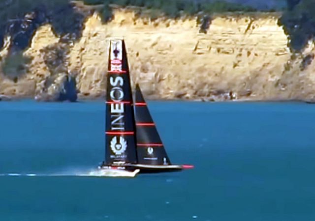 A reflective look at the much criticised Britannia 1 . . . The INEOS Team UK’s first boat to the AC75 design rule for the 36th America’s Cup. See video here