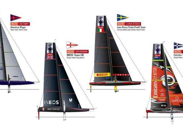 Graphic artist François Chevalier has produced these illustrations of the four AC75 foiling monohulls built to date