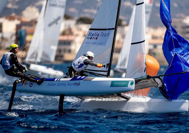 First day of racing at the Hempel World Cup Series Genoa for the 49er, 49erFX and Nacra 17 classes