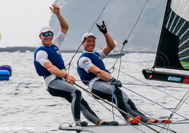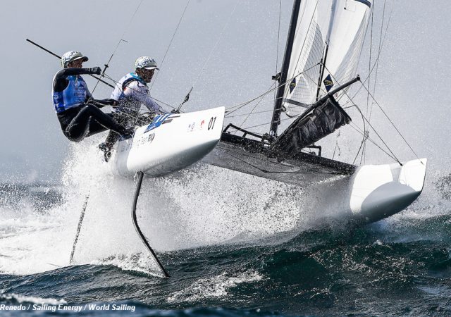 The first day of Medal Races at the 2019 Hempel World Cup Series event in Enoshima, Japan, saw Britain take gold in the 49er and silver in the Nacra 17