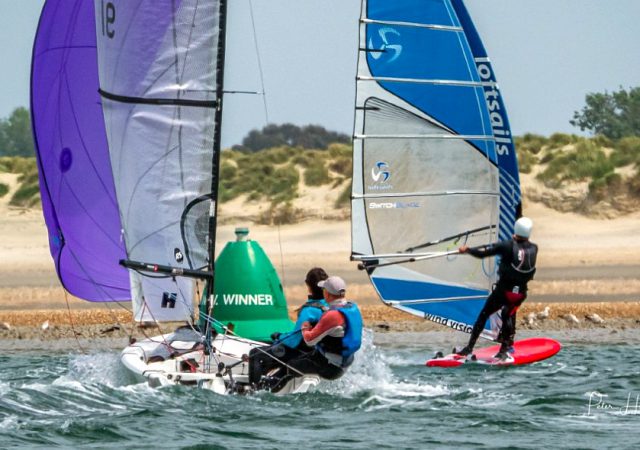 Ewan Wilson and Fin Armstrong from the Wormit Boating Club won the 29er Grand Prix event at Hayling Island SC