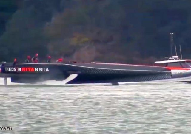 INEOS Team UK did a mast stepping trial over the weekend, and then took Britannia RB2 out for a foil tow test – caught on video here