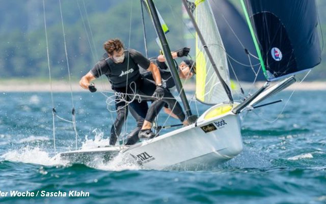On day 2 of the Olympic classes at Kiel Week Peter Burling and Blair Tuke, take the lead in the 49er event.