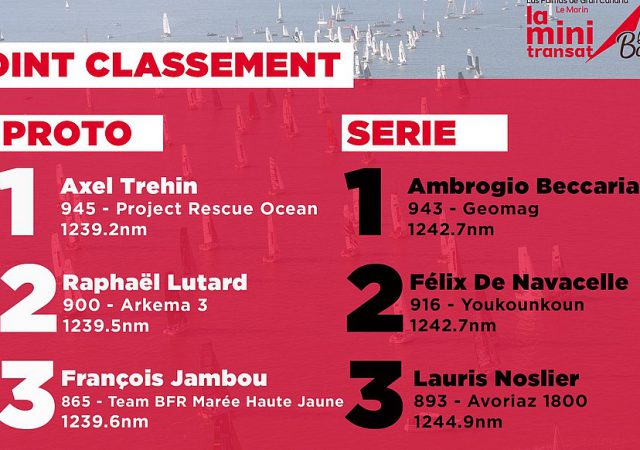 The 2nd leg leaders of the Mini-Transat La Boulangère 2019, are at the midway mark between Gran Canaria and Martinique