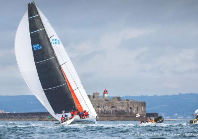 Stefan Jentzsch’s Botin 56 Black Pearl (NYYC) was first Admiral’s Cup boat to round the Fastnet Rock