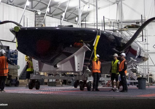 The image crop below highlights the very different hull shape that American Magic have for their second AC75, Patriot.