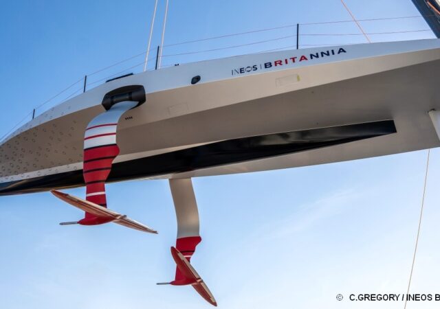 The final piece of the 37th America’s Cup training jigsaw fell into place with the initial launch and tow-test shakedown of the INEOS Britannia LEQ12, ‘T6’, out in the harbour at Mallorca.