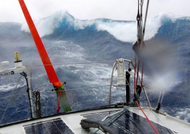Britain’s Sam Davies on Initiatives Coeur is now heading slowly towards Cape Town, following the strike with a floating object Wednesday night.